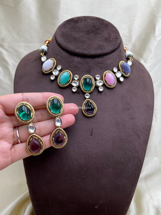 This necklace beautifully blends with the vibrance of multi-hued stones, making it a statement piece that adds grace, sparkle, and versatility to any occasion.